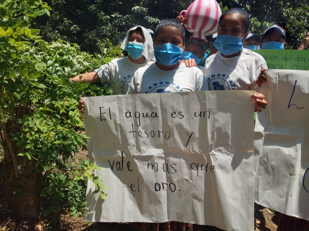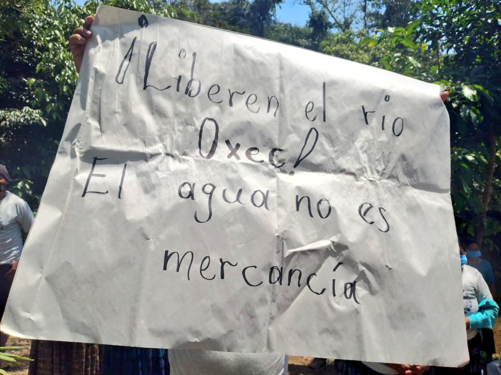 #DíaMundialDelAgua las comunidades de Santa María Cahabón envían este mensaje a la empresa "Cobra" de Florentino Pérez para que liberen el río Ox-eek' y respeten la consulta realizada por las comunidades donde rechazan la implementación de megaproyectos. pic.twitter.com/SOOX5FbtL8