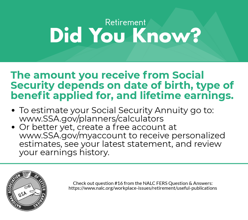 Did you know that the amount you receive from Social Security depends on your date of birth, type of benefit and lifetime earnings? For more information about retirement, please visit https://bit.ly/2CI4Ls2 .