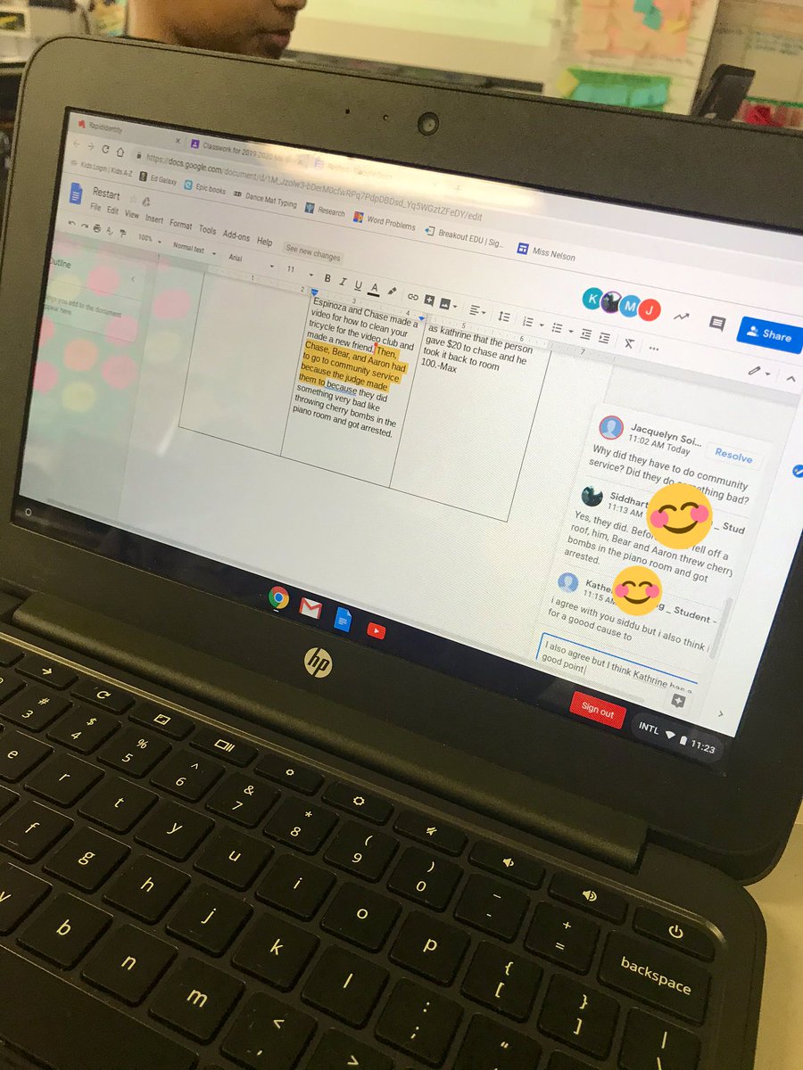 We loved using google docs during books clubs this week to share our thoughts and collaborate with our club. I even joined in on the conversation.
