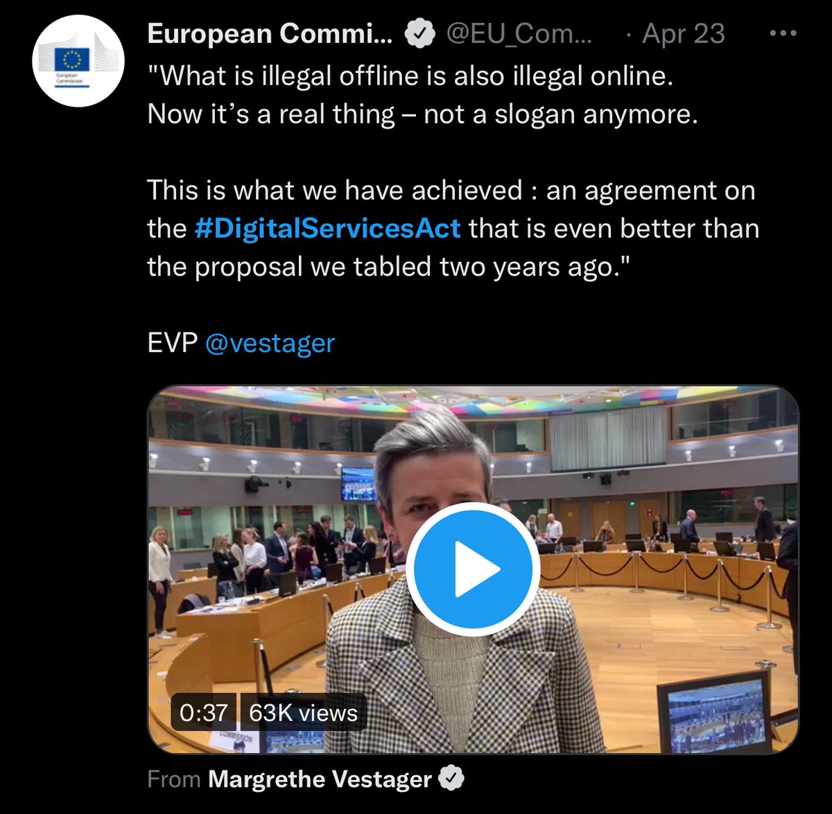 #DigitalServicesAct that is even better than the proposal we tabled two years ago." EVP@vestagerpic.twitter.com/COZHv1DjJV -