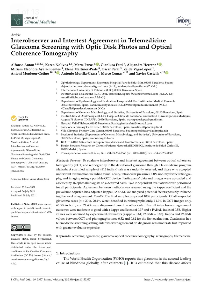 #Telemedicine in#glaucoma is finally available. Interesting to understand reliability on diagnosis in this kind of settings that will become more frequent in the near future.#DigitalTransformation#Telemedicinepic.twitter.com/UOL2QNWzna