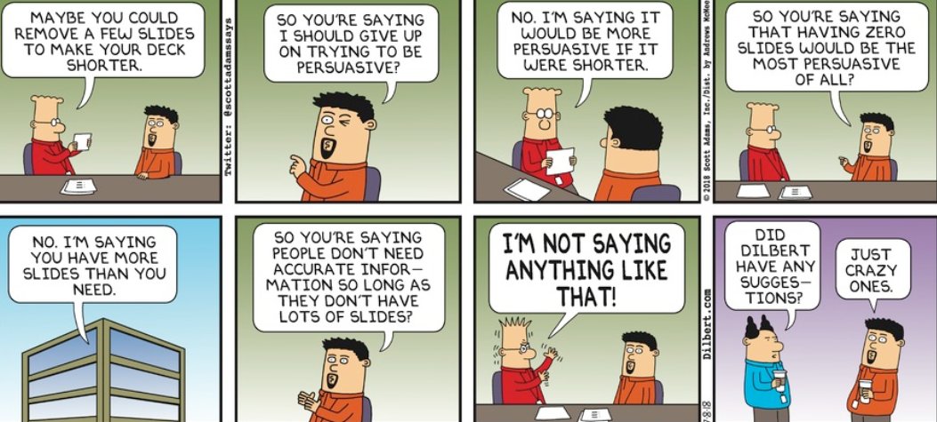 @rws_01 ! If you have worked in BD or#Marketing long enough to have had the occasion to talk with someone about the length of their power-point presentation, then#Dilbert has a cracker for you.#funnymomentpic.twitter.com/GZYrceFLvl