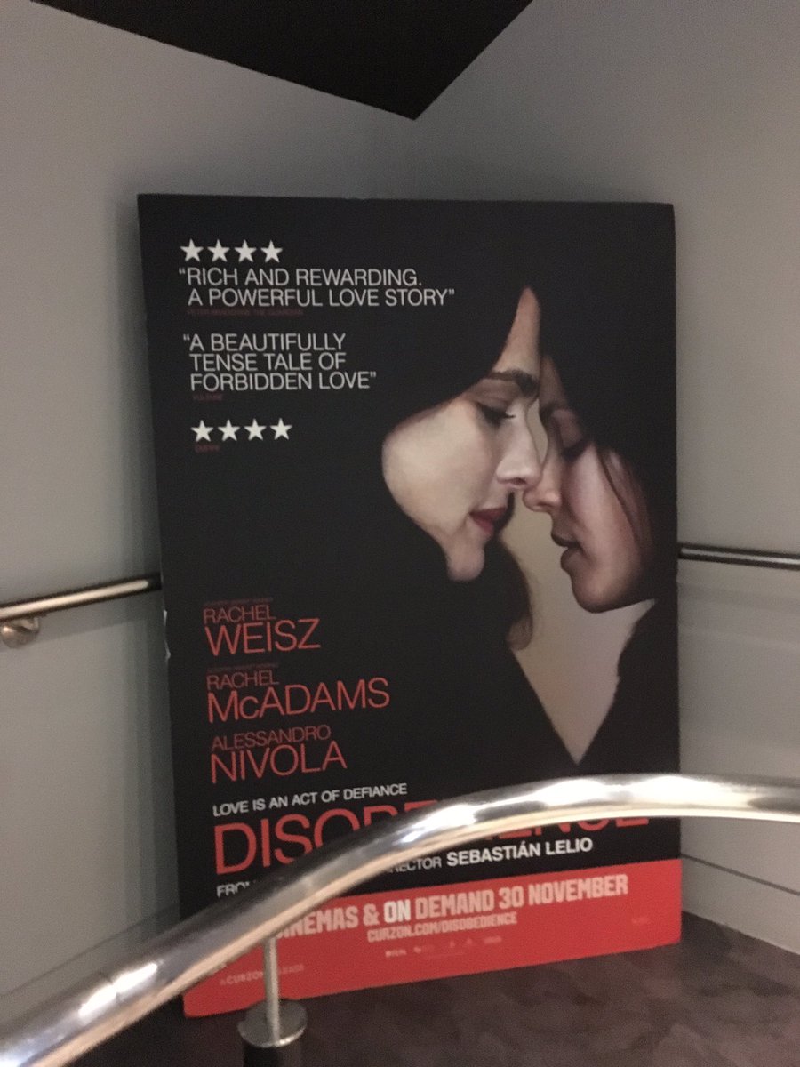 #Disobedience at@No6Cinema and loved it. Slow-paced but beautiful film with the most glorious, heart-wrenching shot toward the end. Emotional performances from Rachel Weisz and Rachel McAdams and an engaging story about the conflicts of faith, desire and sexuality.pic.twitter.com/CH6qBwbwxK -