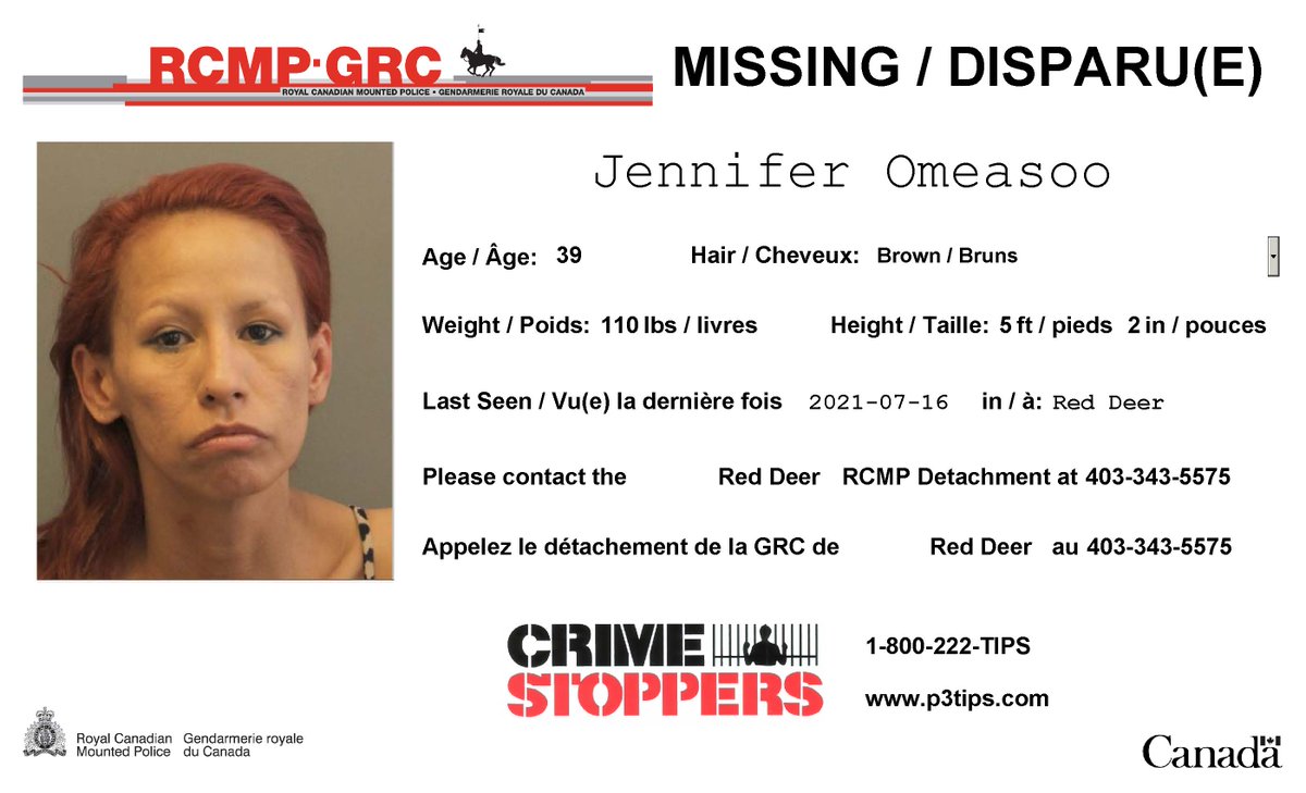 #Disparue : Jennifer Omeasoo, 39 ans,#RedDeerpic.twitter.com/RzM00g8QpV