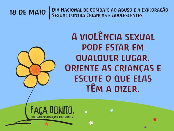 18 de maio é o Dia Nacional de Combate ao Abuso e à Exploração Sexual contra Crianças e Adolescentes.