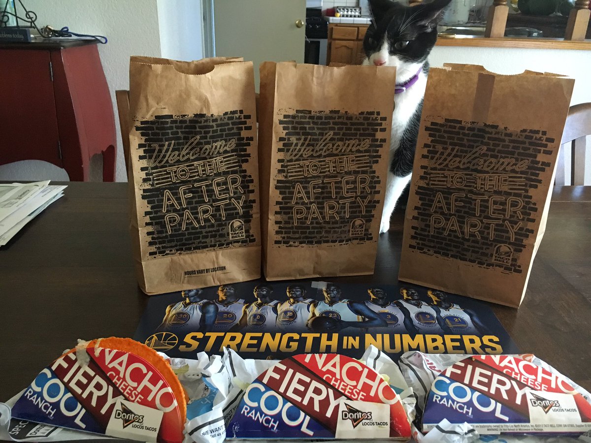 @tacobell for giving us free#DoritosLocosTacos CONGRATULATIONS@warriors Good Job Well-Donepic.twitter.com/RBmhYA24Mc