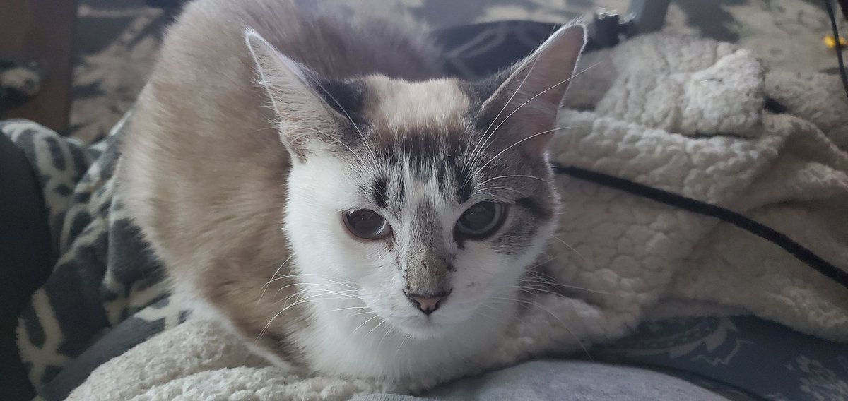 Sitting in mom's lap isn't all that bad...beats hiding under the bed!