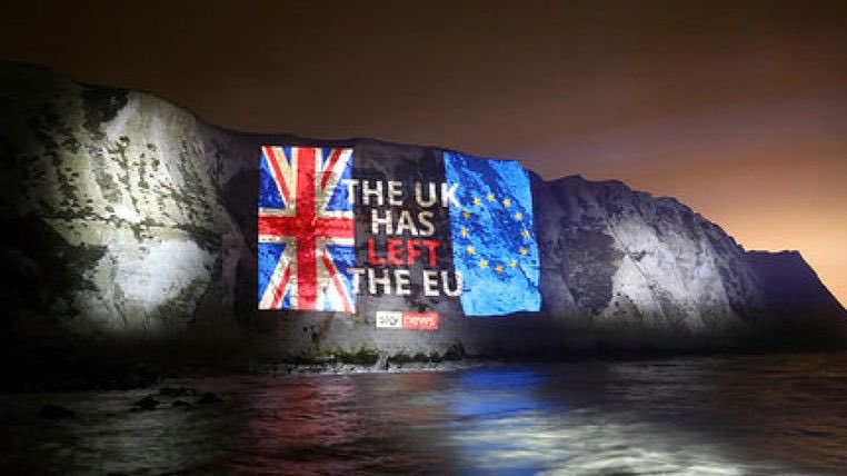 #Dover last night, lit up with a message to say "THE UK HAS LEFT THE EU"