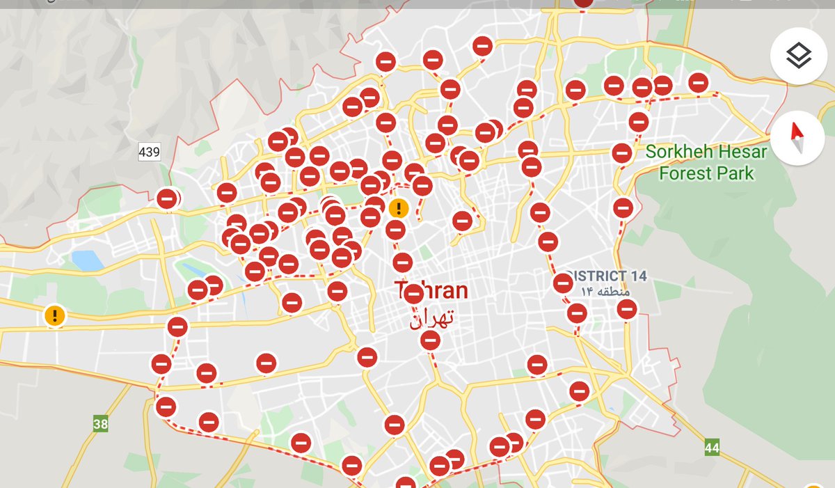 #Tehran Morning of 17 Nov 2019 All roads are closed People have no access to internet... Protests continue.. Wish we could just zoom more and see live what's happening in there...@Google help!#IranProtests#DownWithKhamenei pic.twitter.com/3CeZIcAv4R
