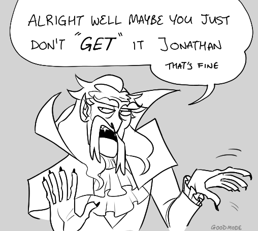 I know in the novel Dracula opens the window before yeeting the mirror into the courtyard, but I think this reaction is funnier