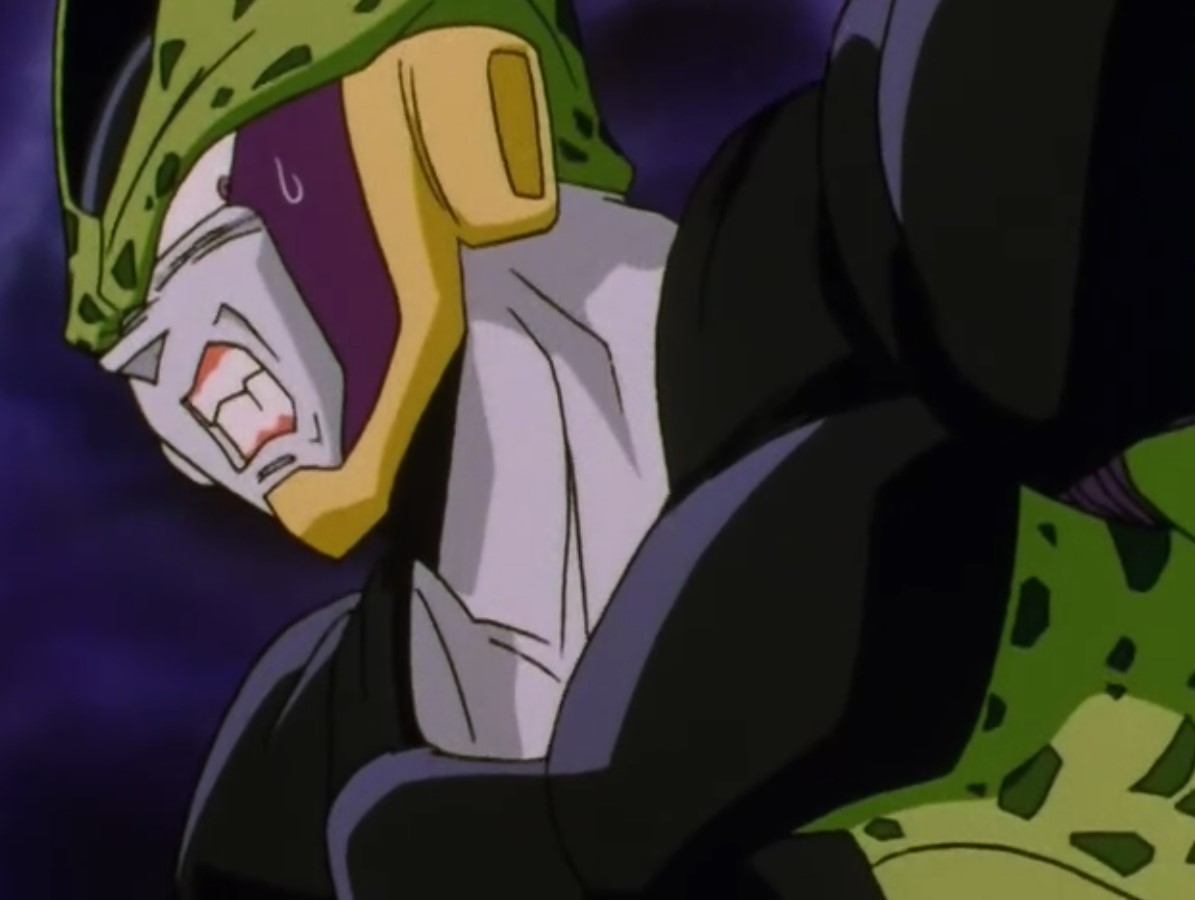EVEN GOKU IS AFRAID (of Cell's deformed face).