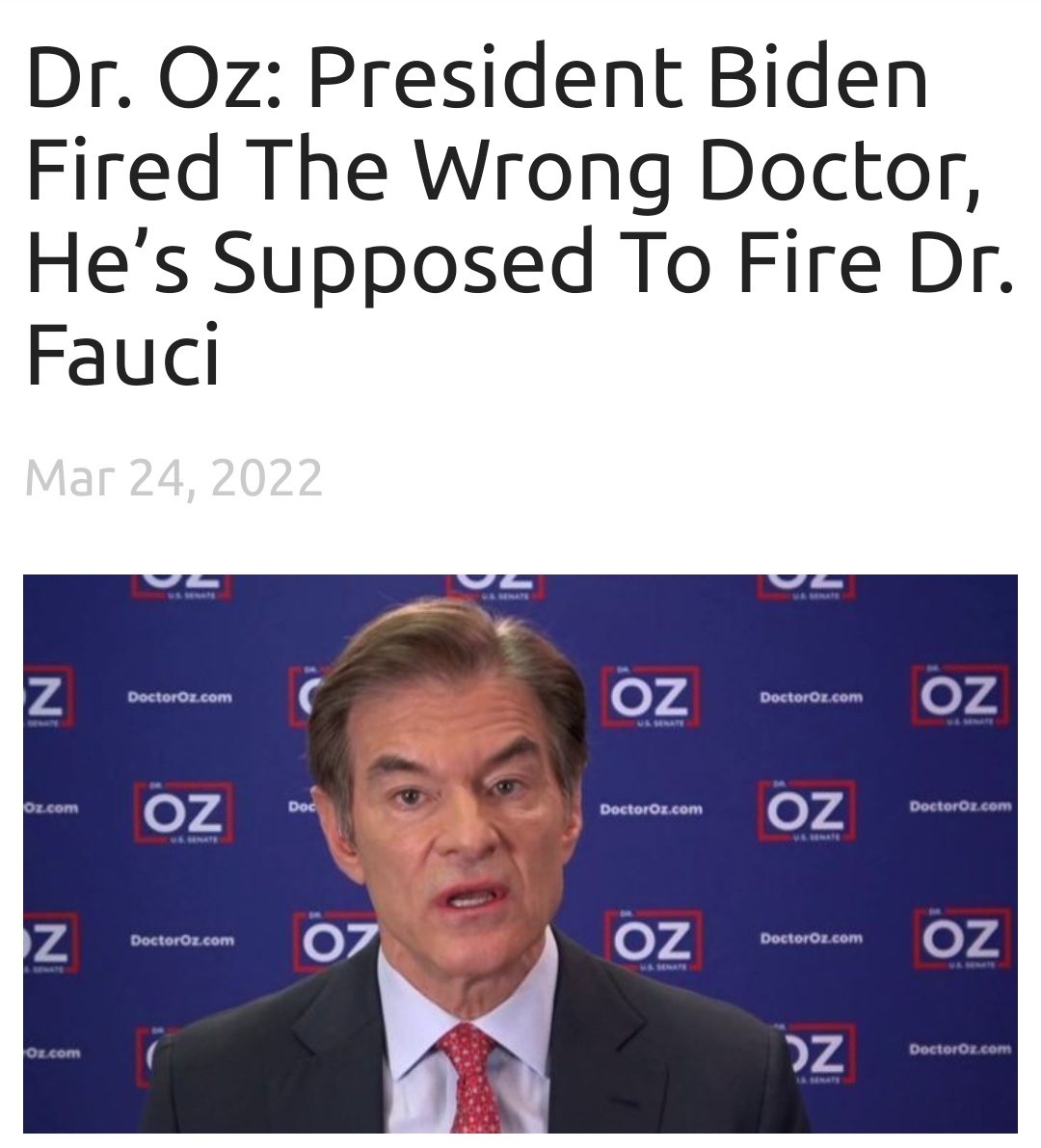 Dr. Oz salty and saying President Biden should have fired Dr. Fauci instead of him is so typical