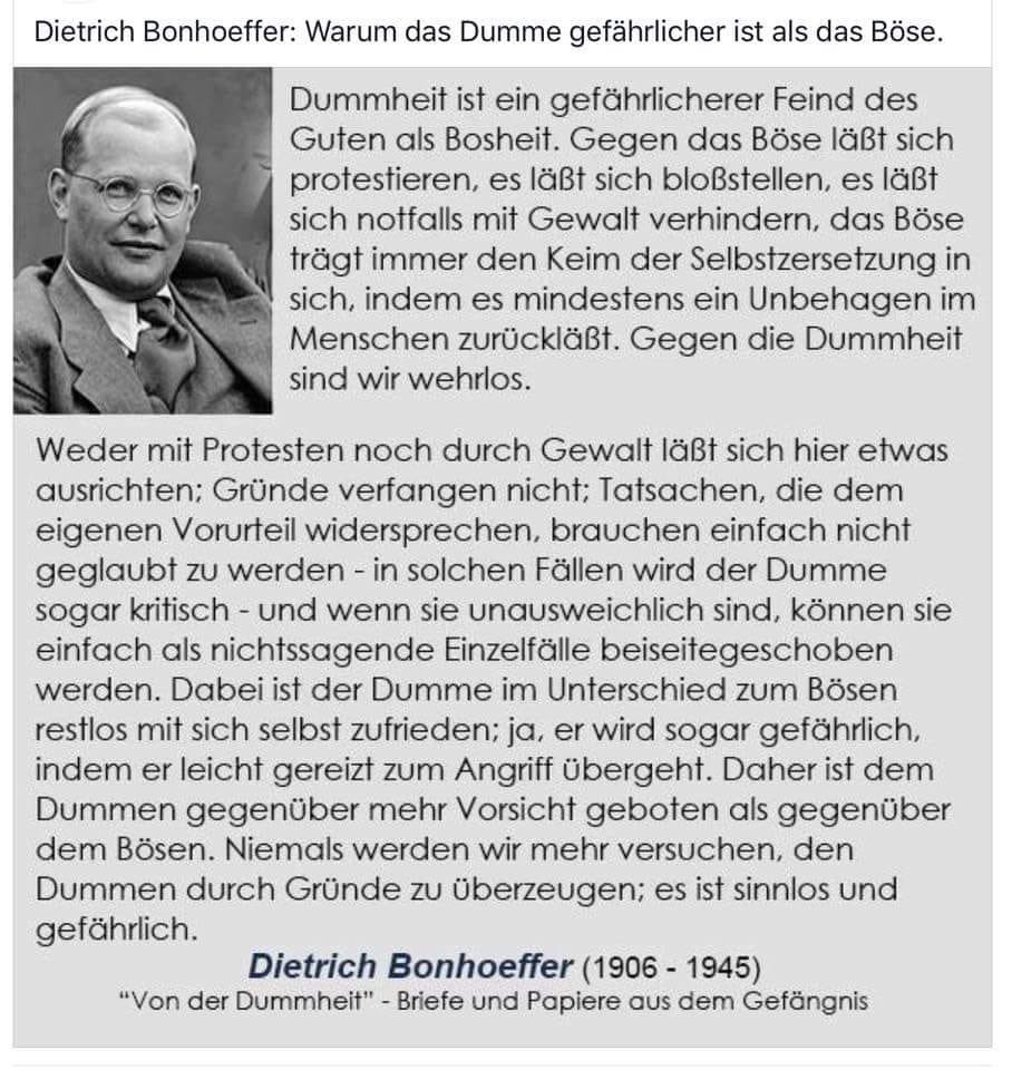 #DietrichBonhoeffer über#Böse und#Dumme ... ● Die Welt liegt im Fiber des#Raubtierkapitalismus aber@ischinger,#Rüstungslobbyist,#Scharfmacher der#imperialistischen#Militarisierung der#Außenpolitik, macht#Bonhoeffer demagogisch passend für#CoronaKrise