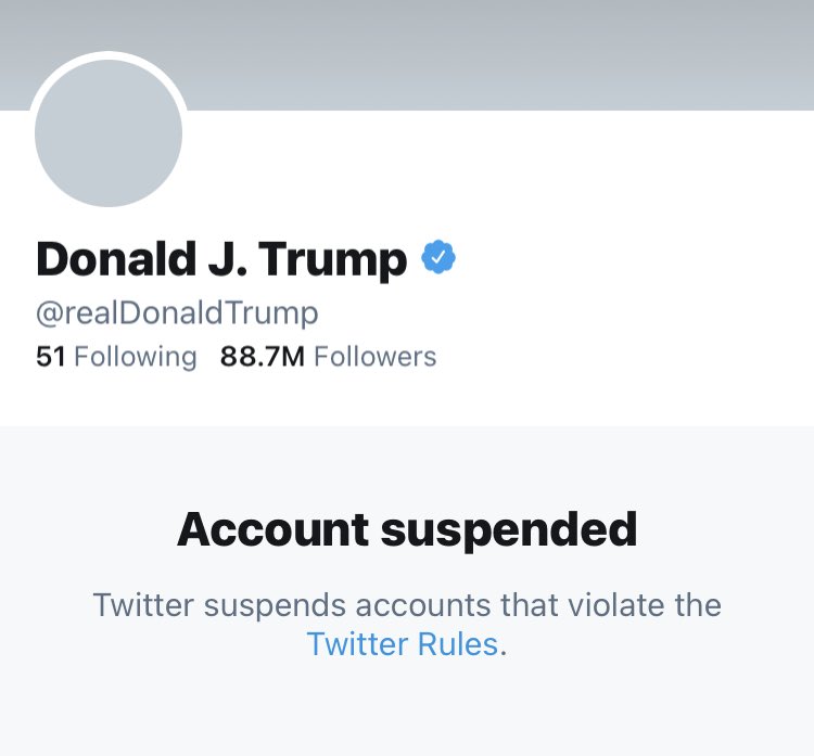 @Twitter & other social media outlets for doing the hard part for us.#DumpTrump#DUMPTRUMP2020#TrumpBanned#TrumpIsALaughingStock#TrumpIsPathetic#TrumpIsAClearAndPresentDanger#TrumpIsACriminal#TrumpIsANationalDisgrace#TrumpIsANationalSecurityThreat#TrumpBan pic.twitter.com/m0GPY86Px9This media may contain sensitive material. Learn more