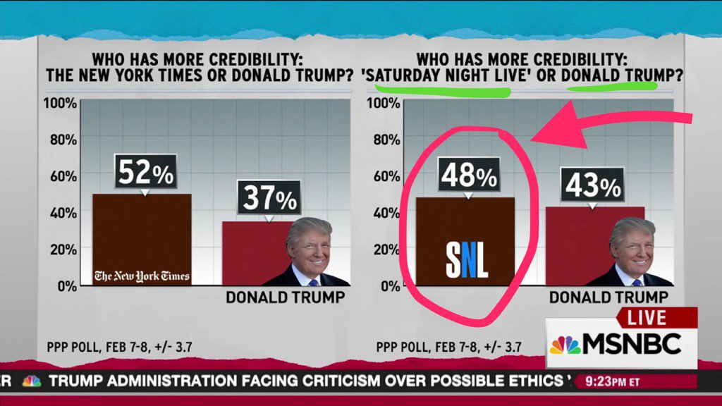 @ppppolls Americans trust@nbcsnl more than@realDonaldTrump#transparency#DumpTrump pic.twitter.com/OLHnCm4DQS