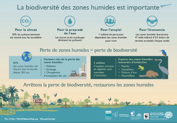 #JournéeMondialeDesZonesHumides. Les mares, les mangroves... sont des lieux caractérisés par une biodiversité variée et remarquable tant les services éco-systémiques rendus sont nombreux.#EDD#E3D#WetlandsDay#ODD pic.twitter.com/HPxQyJhT2W