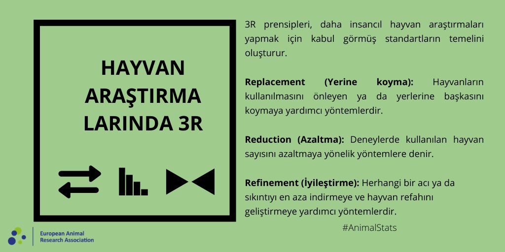 #3Rs prensipleri hayvanlarla araştırma yapmak için kabul edilen standartların temelini oluşturur. Avrupa genelinde birçok 3R merkezi bulunmaktadır. Ayrıntılar için: https://www.eara.eu/animal-research-alternatives …#hayvanaraştırmaları#EARA#AnimalStats#animalresearchpic.twitter.com/8xho2yjqTK