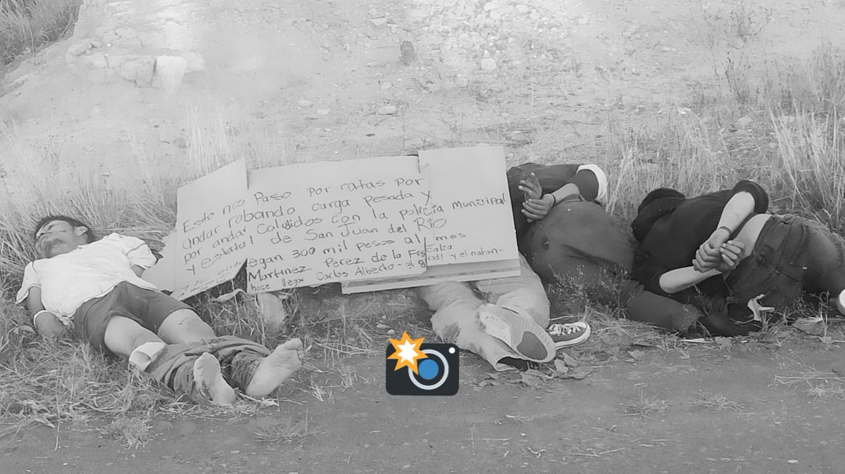 #Panamericana km 126 municipio de#Polotitlan#Edomex. inmediaciones del paraje#Verificentro fueron localizados cuatro personas ejecutadas, con un mensaje intimidatorio.@FiscaliaEdomex@Edomex pic.twitter.com/XcrIqoMdi8
