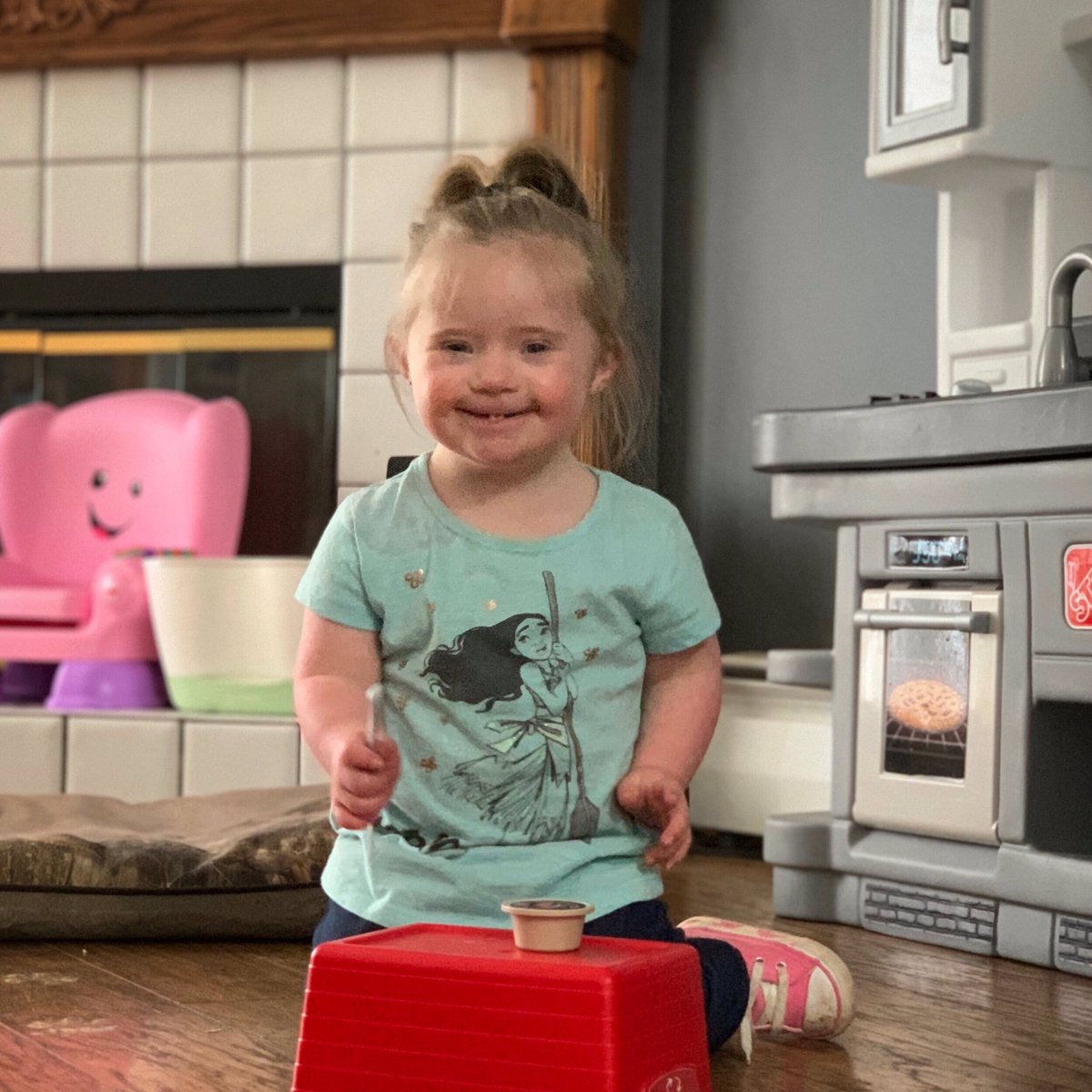 Charlie’s in our Broadmoor Early Intervention Program and when she uses her imagination, she’s building cognitive thinking skills. We often hear our own words come out while children play—this helps expand vocabulary. There’s a cutie pie in the kitchen!