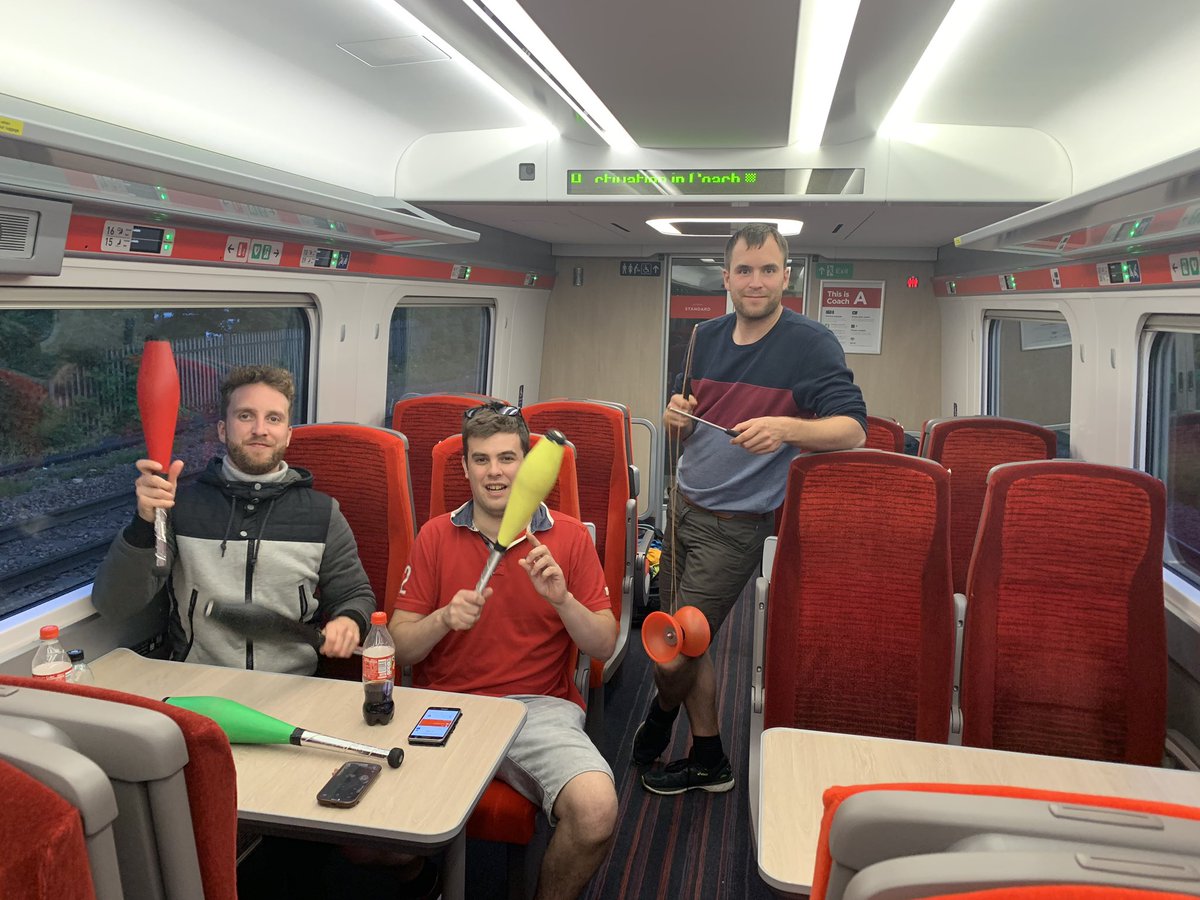 #powercut but we have been entertained by three great lads who are jugglers from Holland returning from the European Juggling Festival in Newark#EJC2019#notsobadafterall#Europe#LNERpic.twitter.com/aBHHfHpg80