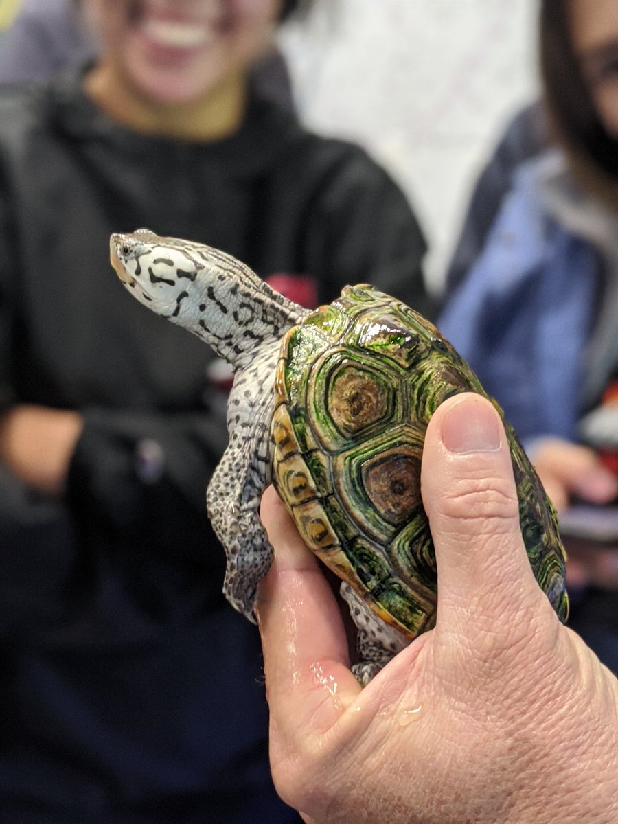 This is a Diamondback Terrapin we named Archie! It is unsure if Archie is male or female. Their pronouns are they/them/theirs