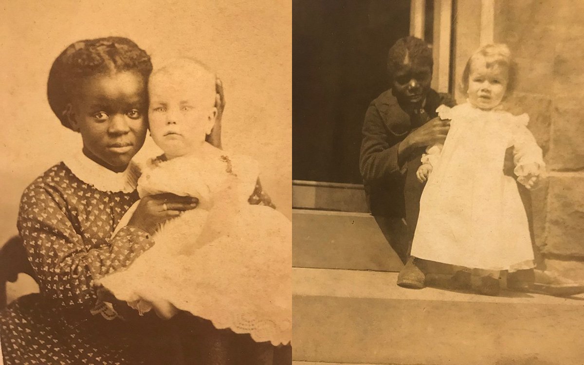 Young African American nannies, "companion nannies," cared for white children with the pretense that they would "grow up together." Photograph from "Framing Shadows: Portraits of Nannies," an exhibition curated by Kimberly Wallace-Sanders. On view in