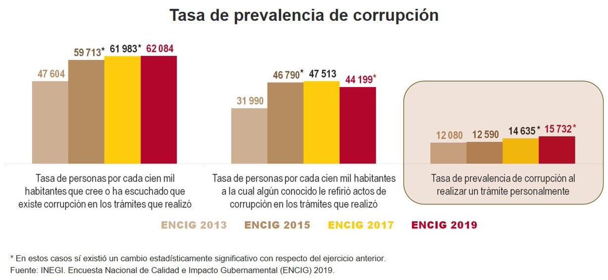 #ENCIG: La prevalencia de corrupción a nivel nacional se incrementó de 14,635 víctimas por cada 100,000 habitante en 2017 a 15,732 en 2019. pic.twitter.com/FG6nkSGsP4