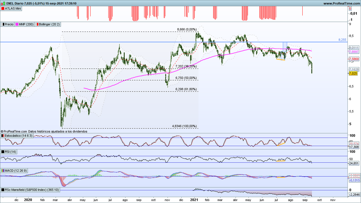 #ENEL Anuló el objetivo alcista en 8,255 y perdió el soporte de los mínimos de marzo. Ahora tiene soporte en los niveles fibo de toda la subida y los 6,45. pic.twitter.com/B3BVVn3yQ1