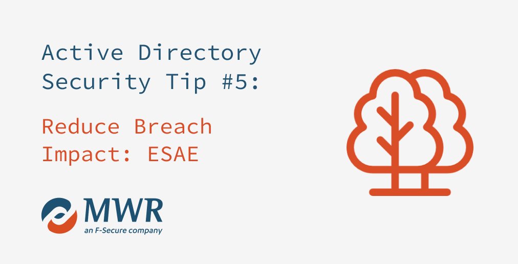 #ActiveDirectory Red Forest Tip #5: Establish security controls around critical areas of the domain with the creation of tiers for device management - https://www.mwrinfosecurity.com/our-thinking/planting-the-red-forest-improving-ad-on-the-road-to-esae/ … |#AD#infosec#sysadmin#ESAE pic.twitter.com/Alj2T0QAiI