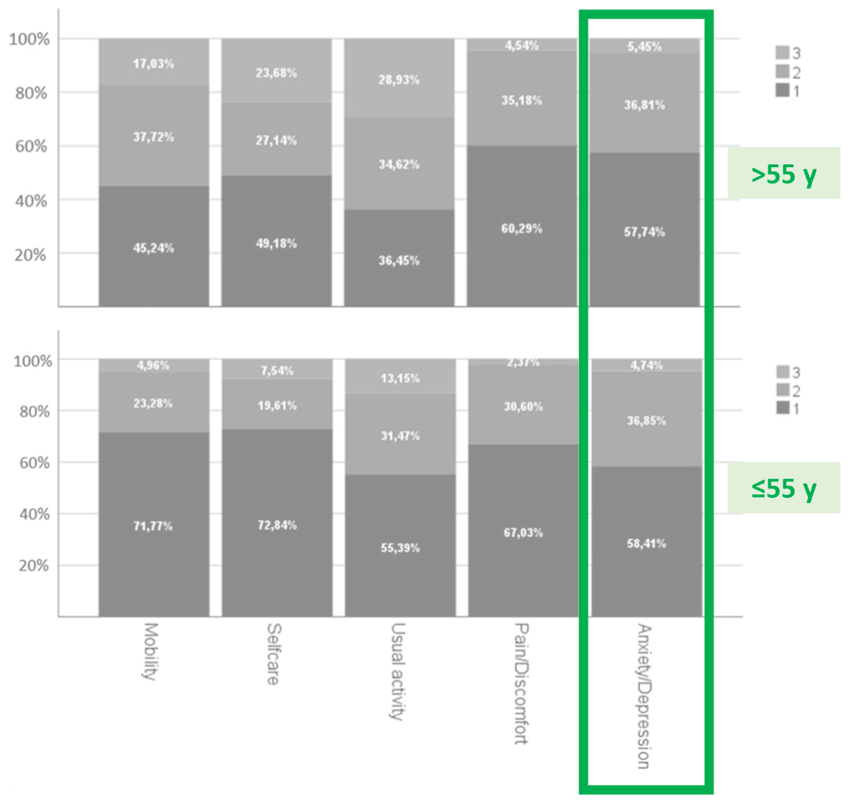 GSR pts: quality of life after stroke EVT in young vs. old pts.