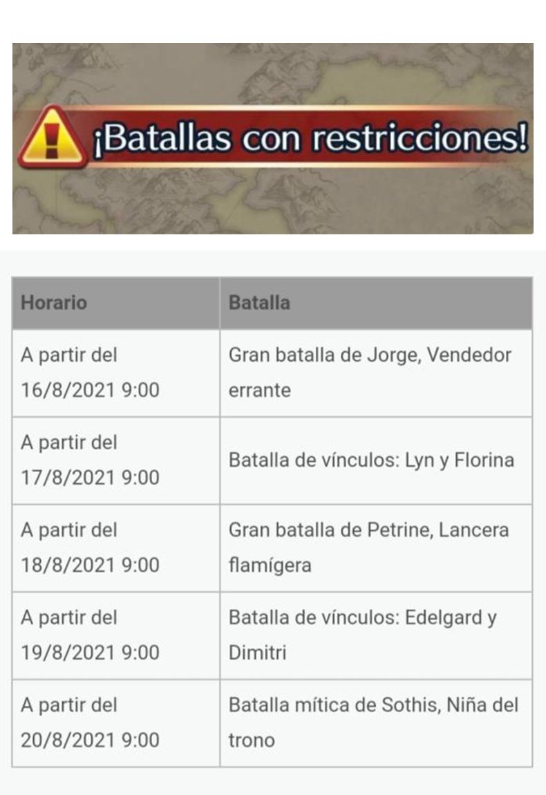[Disponible hasta el 23/08, antes del reset] | #FEHeroes#ESP Las#BatallasConRestricciones están disponibles y tal y como dice su nombre, constarán con limitaciones en a la hora de completar el mapa con éxito. Más detalles en la foto:pic.twitter.com/jInCn8ZIsn