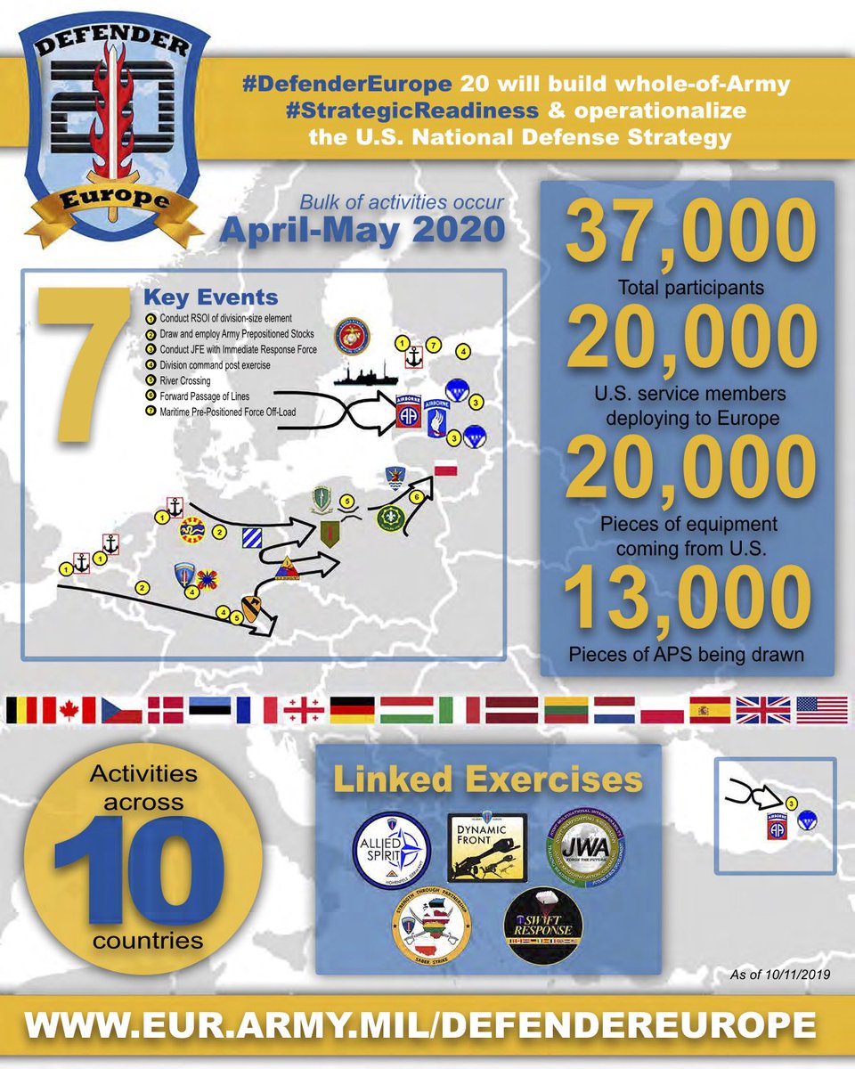 #DefenderEurope 20 is a joint, multi-national,@USArmyEurope -led#EUCOM exercise that will test the U.S. military’s ability to rapidly deploy a large combat-credible force to Europe and integrate that force with our partners and allies. Learn more: https://www.eur.army.mil/DefenderEurope/https://www.eur.army.mil/DefenderEurope/ …pic.twitter.com/YcQKWGVMaU
