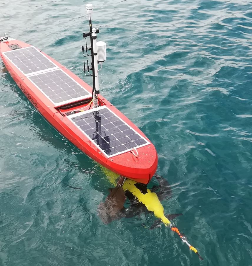 #EUREC4A! The wave-propelled AutoNaut#USV "Caravela" has successfully launched the buoyancy-driven#SeaGlider "HumpBack" Both now collecting valuable data way out to sea, somewhere east of Barbados...#OceanRobotsForOceanRobotspic.twitter.com/EPtzMMVTD8