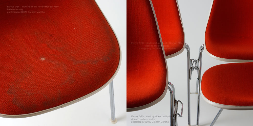 #Eames, back in the day. DSS-1 fibreglass shell#chairs by#hermanmiller in for an overhaul. For details of#restoration or#parts visit http://www.mancha.demon.co.uk/ pic.twitter.com/uCWVwIdK3f