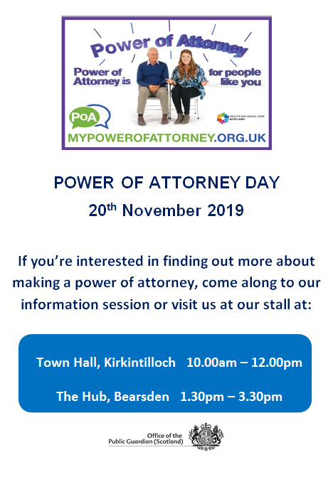 We are providing power of attorney awareness sessions at Kirkintilloch Town Hall and at The Hub in Bearsden