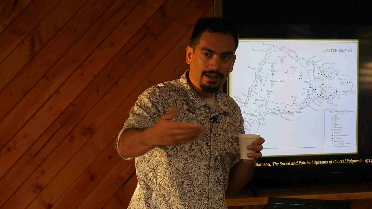 @crispakarati doing a lecture entitled "The Origin of the Tribal Maps of Rapa Nui" to a packed room at Centro Lector Katipare a couple of hours ago in Hanga Roa.#RapaNui#EasterIsland pic.twitter.com/UyTWb6k1S0