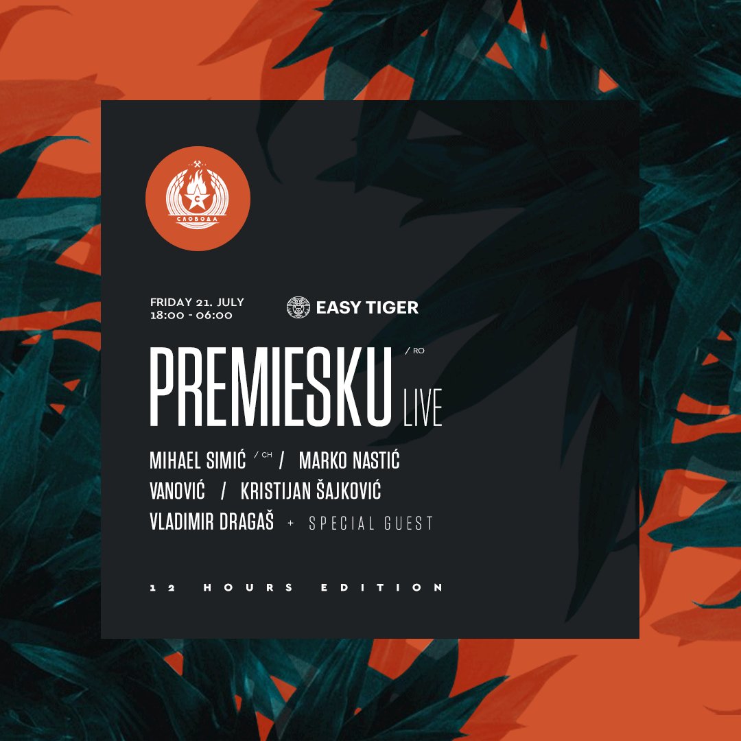 @MarkoNastic#EasyTiger nastavlja letnju rezidenturu na Slobodi 21.07. u specijalnom izdanju žurke koja će trajati 12h! pic.twitter.com/J8zQEzv5mb
