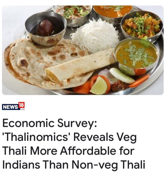#EconomicSurvey2020 Veg thaali more affordable than non veg one!!! A New finding!!!! pic.twitter.com/DoxP9UOtUi