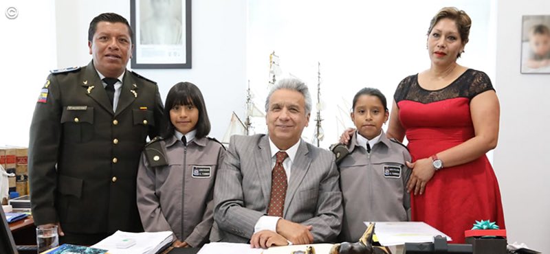 @Lenin cuando recibió a los policías heridos en octubre. Hoy ella y su familia pudieron darle personalmente el mensaje de su nota.#EcuadorPaisDePaz pic.twitter.com/ogEbyUuGAb