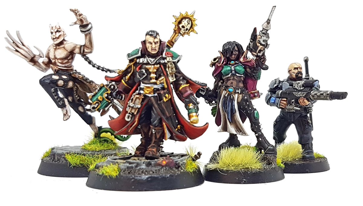 My finished Eisenhorn and retinue, together with Medea Betancore, Harlon Nayl, and of course Cherubael!