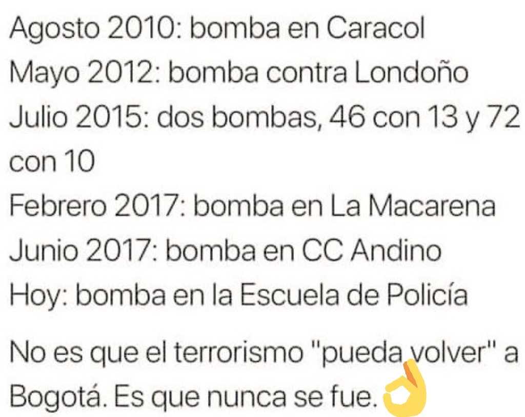 @DeLaCalleHum, NO HAY MARCHA ATRÁS, decía timochenko,#ELULTIMODIADELAGUERRA decían los pendejos, AHORA TENEMOS PAZ, decía el#NobelPeacePrize, ACUERDO PEGADO CON BABAS, dijo el Uribismo, MENTIRA! ladraban los profarianos...https://twitter.com/elespectador/status/995485853823787008 …