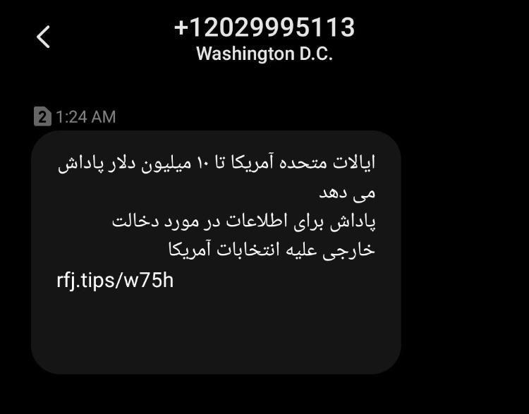 #آمریکا هغو معلوماتو ته تر ۱۰ میلیونو ډالرو نقدی ډالۍ ورکوئ کوم چې د امریکا په ټاکنو کې د بهرنیانو د لاسوهنئ او د سایبری بریدونو مخنیوئ وکړئ. موږ سره اړیکه ونیسئ: تلگرام: @RFJ_Election_Bot واتساپ اویا سیگنال: 001-202-999-5113#Election_Reward pic.twitter.com/O4rUL4oZdO