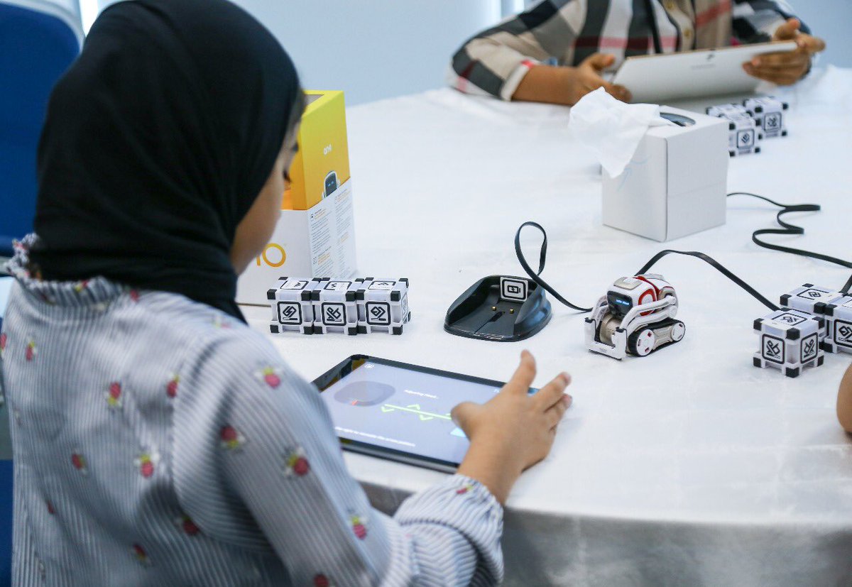 #Emirati_Programmer#Coding students are in the 2nd stage “building”, students add pages & different functions. Meanwhile,#artificial_intelligence students from “Cosmo” group programmed to be a guider for government entities. While “MAX” group learned coding logic.pic.twitter.com/aPfF9Y5PwI