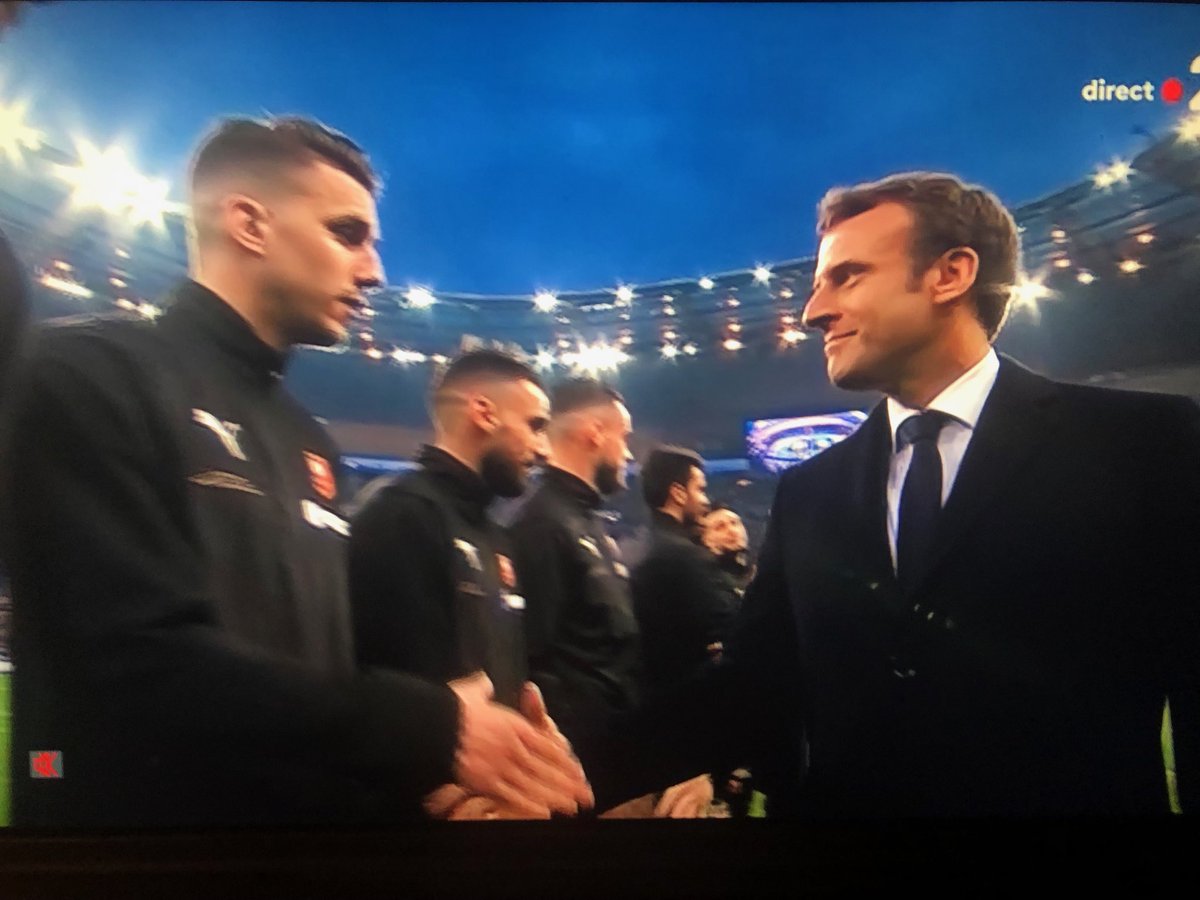 #StadeDeFrance, en effet, ont respecté le président#EmmanuelMacron quand il est descendu sur la pelouse, saluer les joueurs de#Rennes et du#PSG avant la finale de la#CoupeDeFrance.pic.twitter.com/tg2upfGHLS