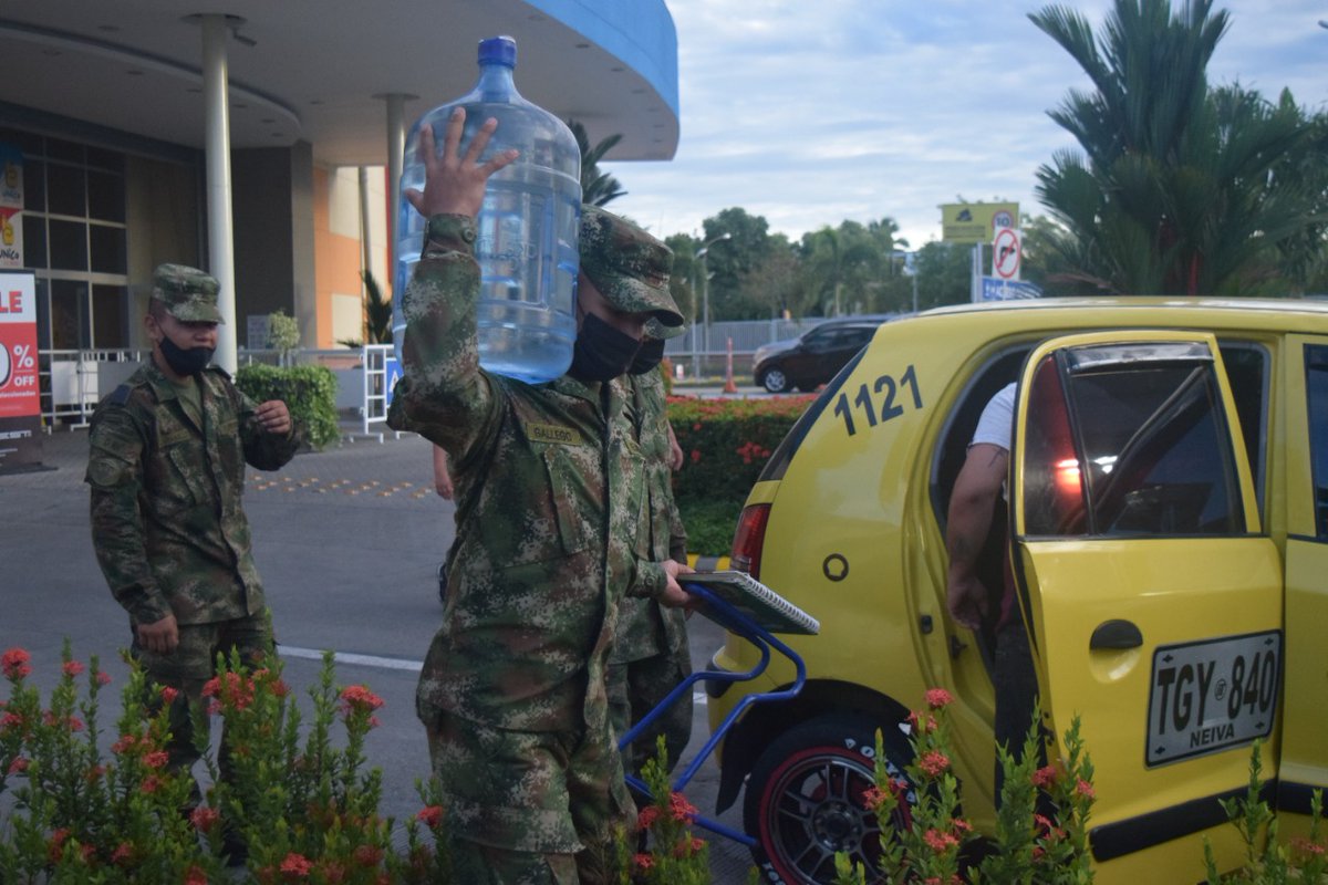 las imágenes que hoy deja el mercado campesino realizado por la #NovenaBrigada del@COL_EJERCITO en la ciudad de#Neiva el cual fue articulado con la@AlcaldiaNeiva y el CEGO en aras de reactivar la economía de la capital opita. Esto es:#AsistenciaMilitarpic.twitter.com/pGCNYdI3Tv
