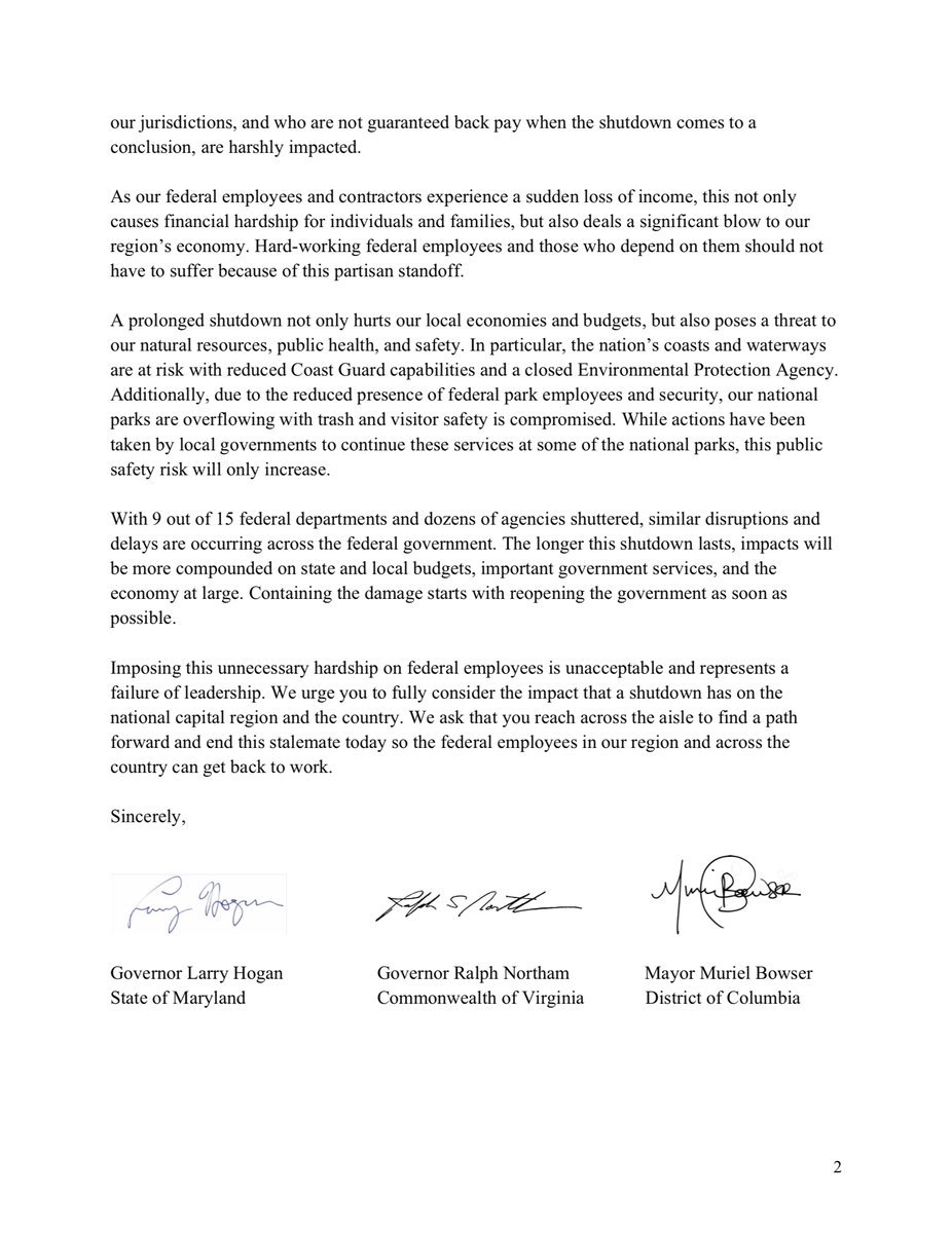 @GovLarryHogan,@MayorBowser, and I are joining together on behalf of the over 360,000 public servants that call our region home to say#EndTheShutdown. pic.twitter.com/ODeAP09BJK