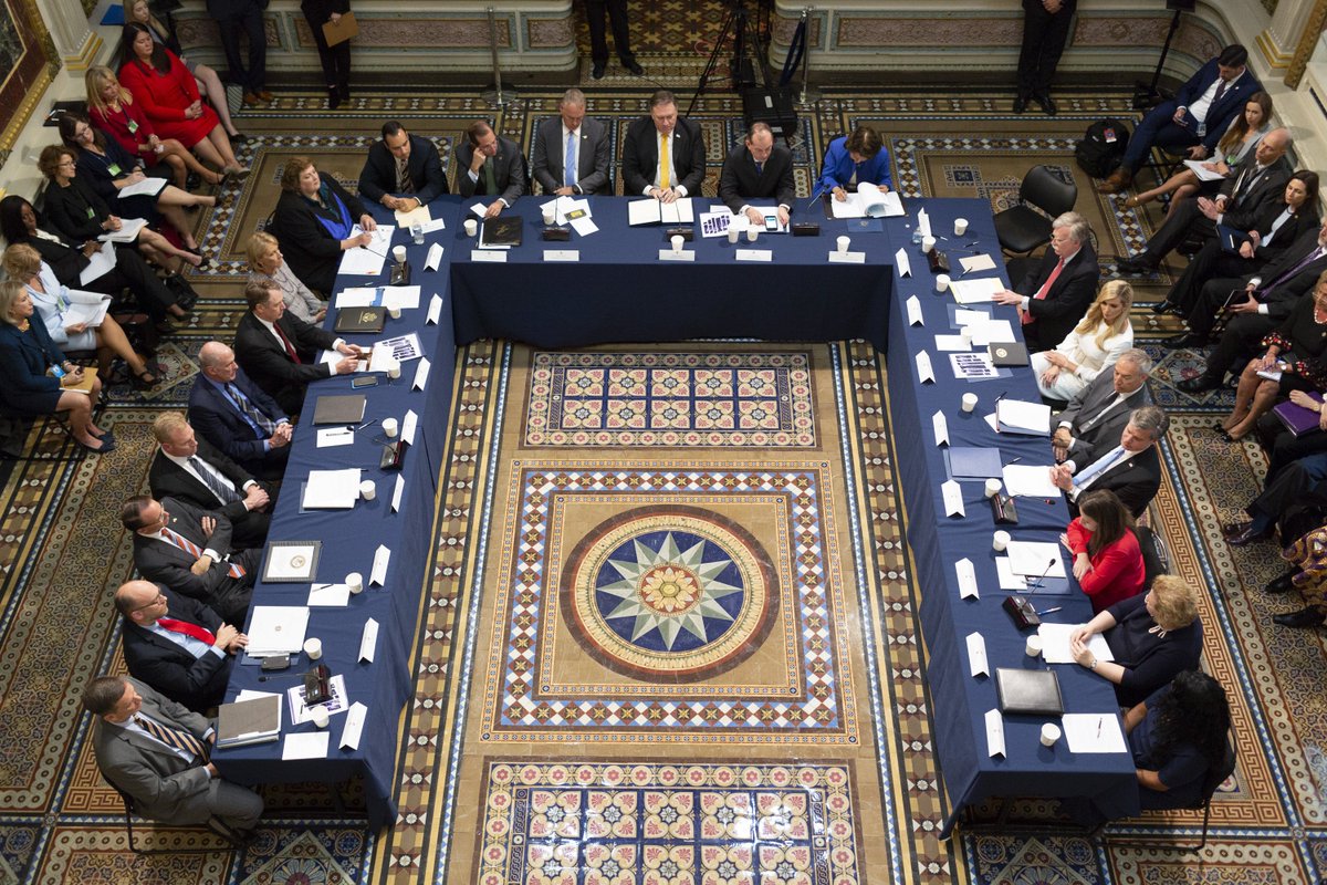 @realDonaldTrump and members of his Cabinet for this year’s President’s Interagency Task Force to Monitor and Combat Trafficking in Persons#PITF meeting to highlight the extraordinary efforts undertaken across our government to end modern slavery.#EndTrafficking pic.twitter.com/ZQJcKa04az