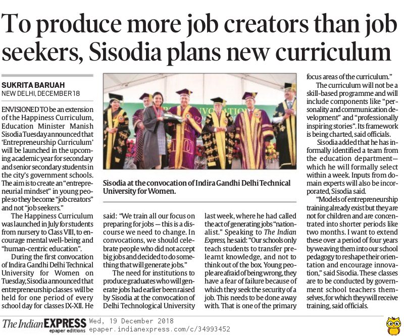 #EntrepreneurshipCurriculum’ from the next session has also been proposed.@AamAadmiParty@msisodia@ArvindKejriwal@AnirudhKhaitan7@NewIndianXpresshttp://www.newindianexpress.com/cities/delhi/2018/dec/18/after-happiness-delhi-students-to-learn-entrepreneurship-1913247.html … -