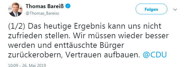 #Erstwählern die Wahlen können gar nicht schlecht genug für die#CDU ausfallen. Solange sich bei denen fundamental was ändert bleibt das Motto#NieMehrCDU#Vernunfthttps://twitter.com/h5000_/status/1132943175675502593 …