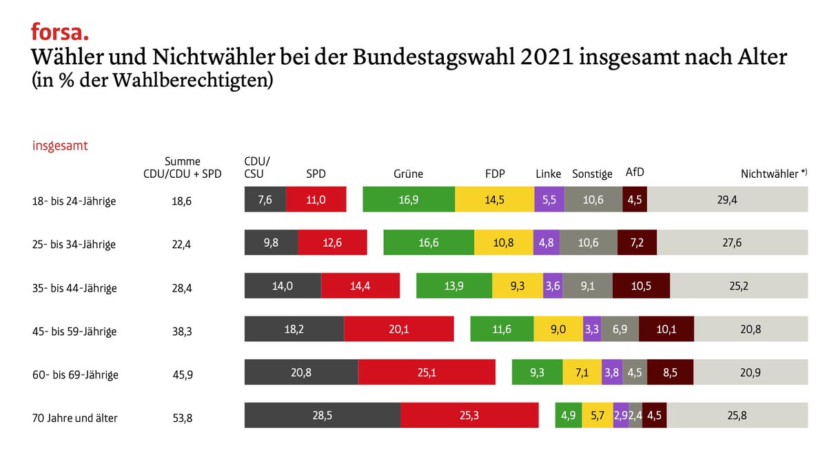 #Volksparteien ist damit wohl endgültig dabei... Spannend bei den#Erstwählern: Bei den jungen#Frauen (18-24 Jahre) haben 20%#Grüne gewählt, bei den jungen#Männern 19% die#FDP. Spaltung oder klare Abgrenzung?#Forsapic.twitter.com/WWkMkjfboW